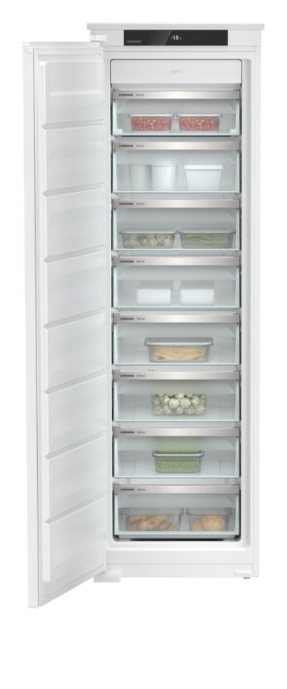 Встроенные направляющие всегда обеспечивают удобный доступ к Вашим продуктам при открытых и загруженных выдвижных контейнерах морозильного отделения. Ограничитель выдвижения предотвращает их выпадение. При задвижении выдвижные контейнеры без усилий перемещаются в оптимальное конечное положение, что обеспечивает правильное распределение воздуха перед выдвижными контейнерами и, следовательно, оптимальное охлаждение.