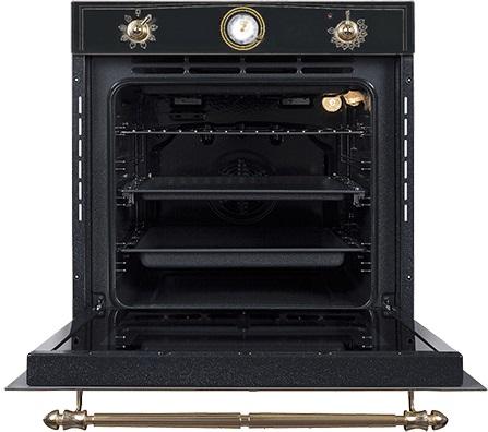 Духовой шкаф BK 60.3 в ретро-стиле с объемом 73 л оснащен 7 режимами нагрева, включая нижний нагрев с конвекцией для равномерного пропекания выпечки. Двухуровневые телескопические направляющие облегчают загрузку тяжелых противней. Четкий механический контроль и TFT-дисплей обеспечивают точные настройки. Тройное остекление дверцы и система охлаждения гарантируют безопасность. Функция отложенного старта и таймер с сигналом упрощают планирование готовки.