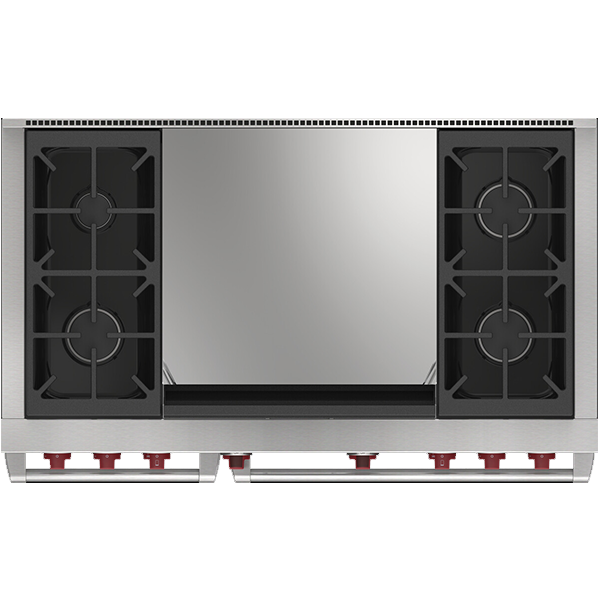 Газовая варочная поверхность состоит из четырёх горелок, мощностью от 2,7 кВ (для топления) до 5,3 кВ (для быстрого закипания и интенсивной обжарки) . Запатентованная двухуровневая конструкция газовой конфорки Wolf позволяет максимально точно контролировать температуру нагрева. Система искрового реподжига автоматически зажигает горелку при её заливе. Увеличенная площадь теппана обеспечивает равномерное распределение тепла, позволяя быстро приготовить сразу несколько блюд для большой семьи или гостей.